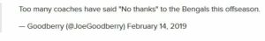 Tiempo tendremos para un análisis más extenso (os emplazo a la “Guía Bengals 2019”), pero en principio, estas son las caras más relevantes del nuevo staff técnico bengalí para 2019.