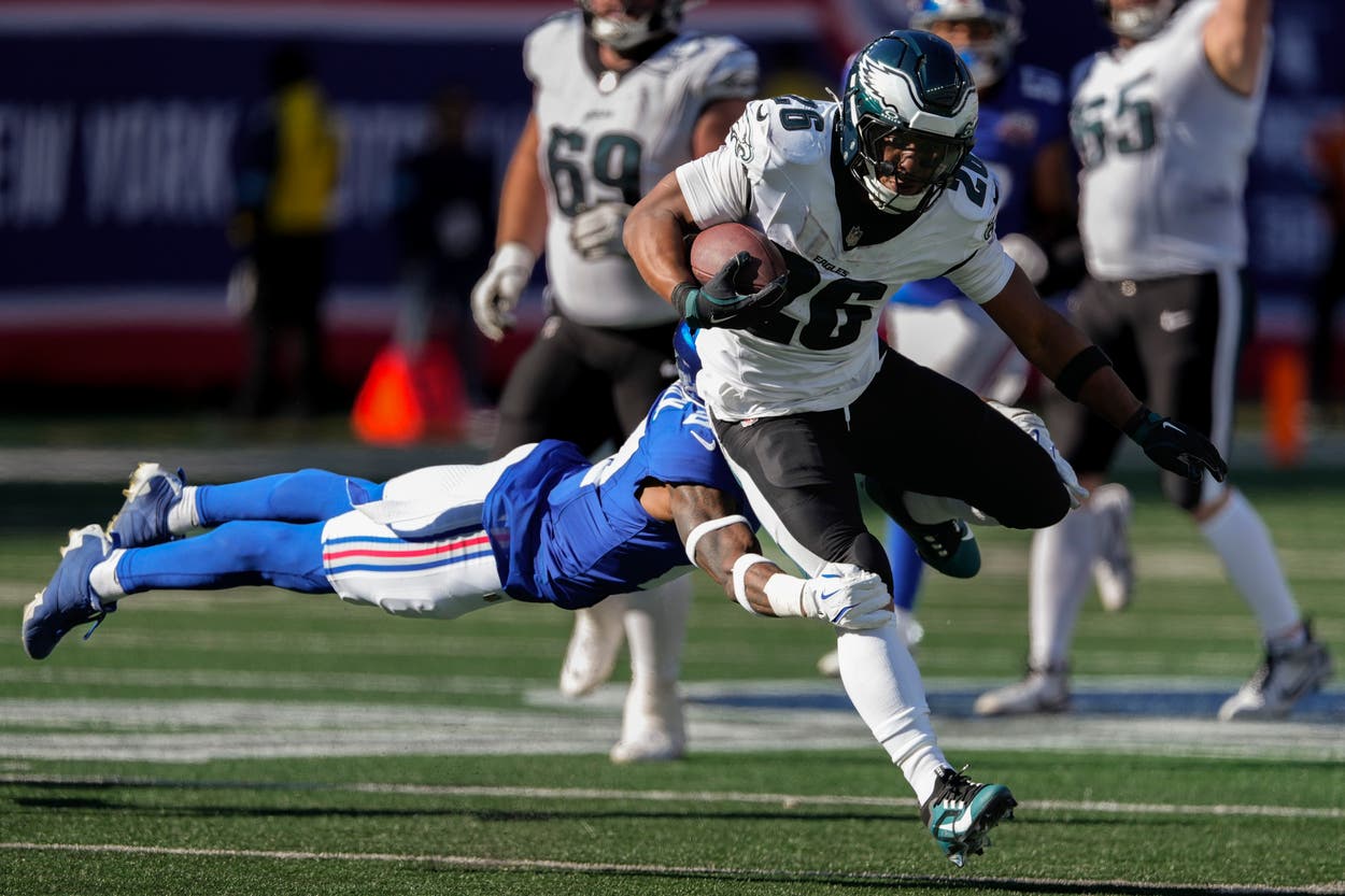 Derrick Henry y sus tremendas setecientas y pico yardas se lleva los titulares, pero cuidado con Barkley, que lleva unas nada despreciables 658 (3º de la competición), y sus 6,1 por carrera son el mejor porcentaje entre los runningbacks titulares de la liga. Se compenetra a la perfección con Gainwell, quien gana bien (valga la redundancia) las yardas difíciles. Ambos son también grandes receptores, por lo que hay que estar pendientes cuando salgan fuera del backfield. Importante cerrar bien los flancos exteriores. Por cierto, tanto el head-coach Sirianni, como su joven coordinador ofensivo Moore, no tienen miedo en jugarse cuartos downs.